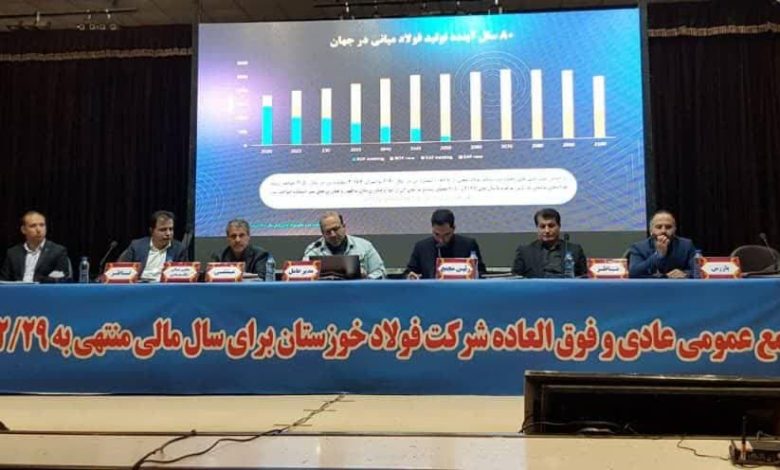 امین ابراهیمی مدیرعامل فولاد خوزستان با اشاره به پیشبینی تولید فولاد در سی سال آینده، اظهار داشت: بر اساس پیشبینیها تولید فولاد میانی از یک میلیارد و ۸۶۷ میلیارد تن در سال ۲۰۲۰ به دو میلیارد و ۱۸۷ تن در سال ۲۰۵۰ میرسد. تولیدکنندگان فولاد به روش فعلی، تا سال های ۲۰۴۵ تا ۲۰۵۰ تعطیل شده و جایشان را به فناوریهای نوظهور و تولید فولاد سبز میدهند. جایگاه فولاد خوزستان در میان بازیگران اصلی صنعت فولاد کشور با تولید چهار میلیون تن، نزدیک به ۹ درصد و در جایگاه دوم کشور است. با در نظر گرفتن تحصیل سالانه ده میلیارد یورو از صادرات محصولات فولادی، مواردی همچون: توسعه زیرساختهای لازم جهت تحقق توسعه متوازن و پایدار، عرضه ۳۶ میلیون تن محصولات فولادی، افزایش سهم فولاد در تولید ناخالص داخلی و توسعه و ظرفیتسازی جهت تولید ۵۵ میلیون تن فولاد میانی، اهداف و چشمانداز صنعت فولاد کشور را در افق ۱۴۰۴ تشکیل میدهند.