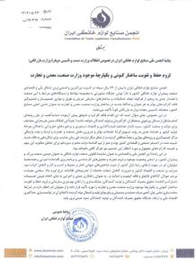 بیانیه انجمن ملی صنایع لوازم خانگی ایران درخصوص انفکاک وزارت صمت و تأسیس دوبارة وزارت بازرگانی: لزوم حفظ و تقویت ساختار کنونی و یکپارچه موجود وزارت صنعت، معدن و تجارت.