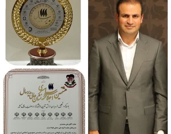 ????در این اجلاس دکتر علی محمدی مدیرعامل گروه ملی صنعتی فولاد ایران با توجه به ارزیابی و با نگاه به تخصص، شایستگی، روحیه جهادی در راستای کار آفرینی، اشتغال زایی و نیل به اهداف اقتصاد مقاومتی و طرح های در دست اجرا و توسعه، موفق به دریافت نشان عالی مدیر سال در سال ۱۴۰۲ شد و از وی تقدیر به عمل آمد.