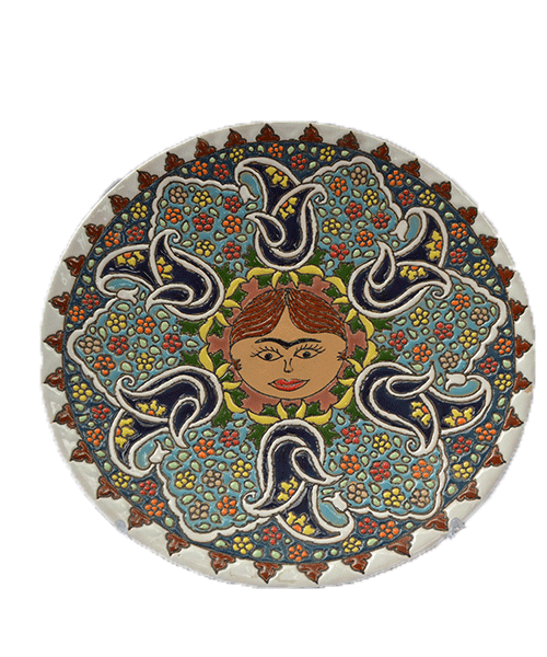 بشقاب سفالی میناکاری شده طرح خورشید |