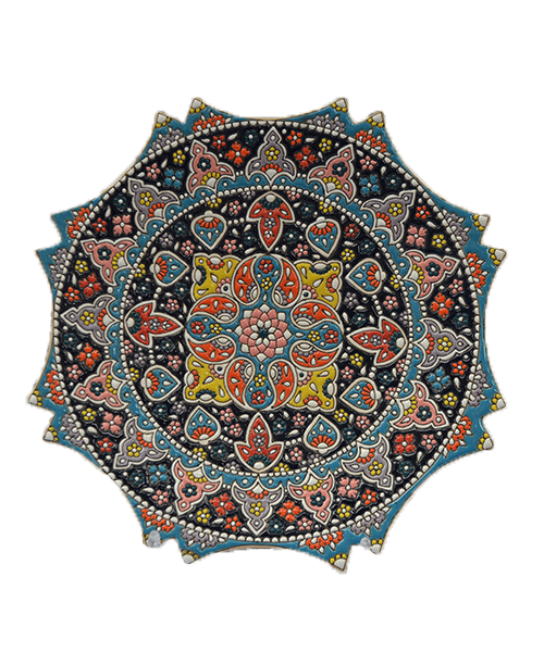 بشقاب سفالی میناکاری شده طرح لبه هشتی |