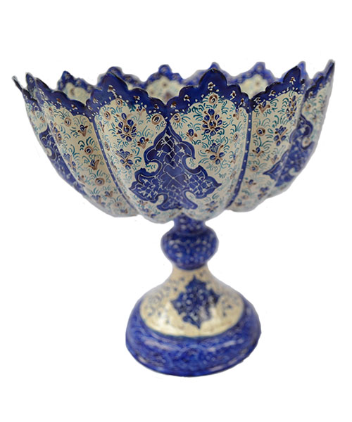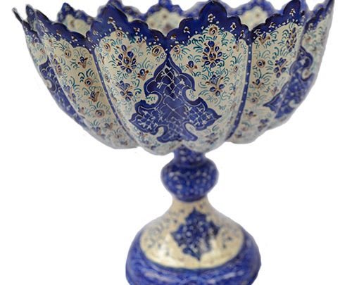 جنس: مس با لعاب مینا – نوع طرح: اسلیمی ختایی – نوع تکنیک: مس میناکاری شده – گروه هنری: صنایع دستی فلزی – سبک طرح: سنتی – زیرگروه هنری: میناکاری