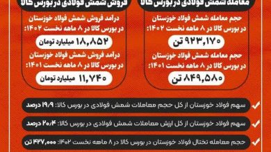 به گزارش شهراکو724، شرکت فولاد خوزستان در ۸ ماهه نخست سال جاری، بزرگترین تامینکننده نیاز بازار داخلی ایران هم به…